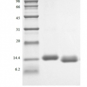 Approximately 14.5 kDa, a single non-glycosylated polypeptide chain containing 127 amino acids.